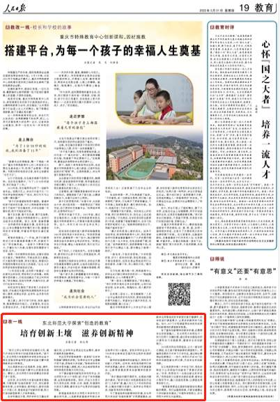 3月31日,《人民日报》以“培育创新土壤 滋养创新精神”为题,从教师如何教、学生如何学、教学环境如何营造三个维度,对我校“创造的教育”理念引领下深化本科教育教学改革的经验和做法进行了深入报道。同时,《人民日报》客户端吉林频道头条、人民网吉林频道头条对此也进行了报道。附:相关报道链接1.《《人民日报》报道2.《人民日报》客户端吉林频道头条报道3.人民网吉林频道头条报道