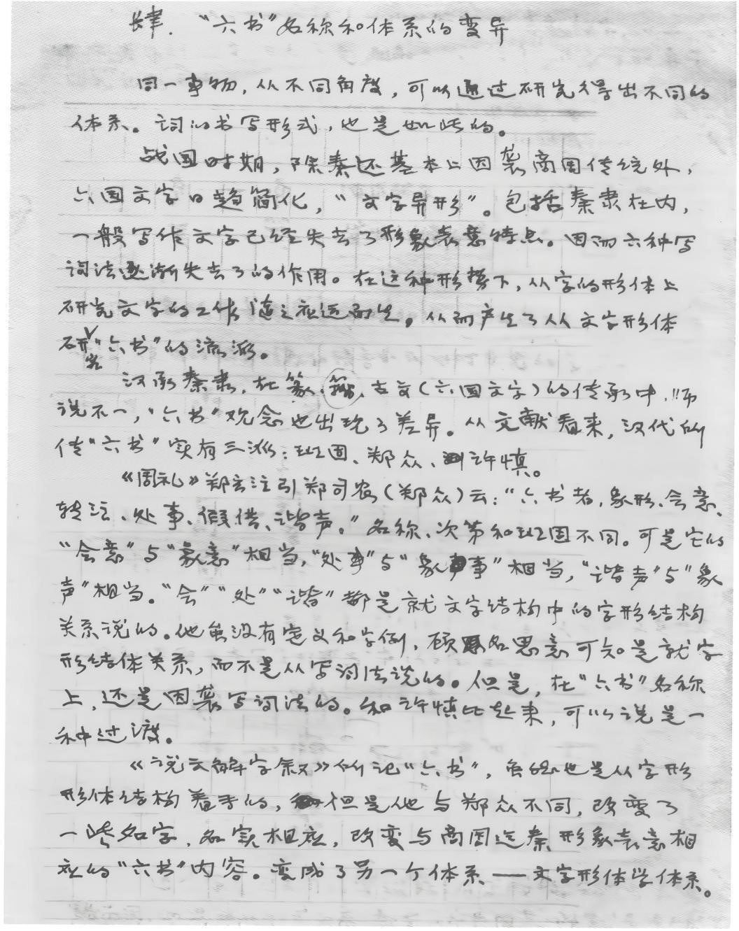 先生最卓越的研究成就,莫过于文字学。他在文字学理论上有两篇经典之作——《从图画文字的性质和发展试论汉字体系的起源和建立——兼评唐兰、梁东汉、高本汉三位先生的“图画文字”》(见1959年《吉林师大学报》第四期)、《假借、形声和先秦文字的性质》(见1983年7月《古文字研究》)。这两篇论文,尤其前者,在文字学史上有着里程碑的价值,它们既是对前此的文字学的批判也是自我清算,它们标志着先生文字学思想的飞跃,也是科学文字学的新起点。