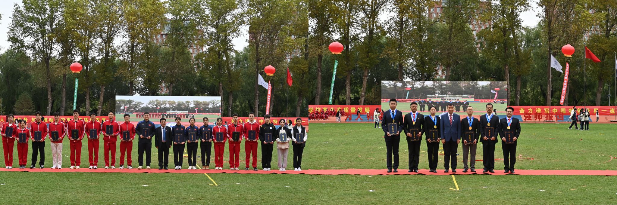 学校党委书记李忠军、校长徐海阳分别为代表我校参加全国和省市体育竞赛的学生、教职工运动员颁奖。