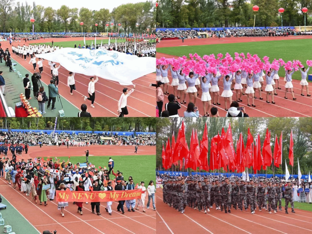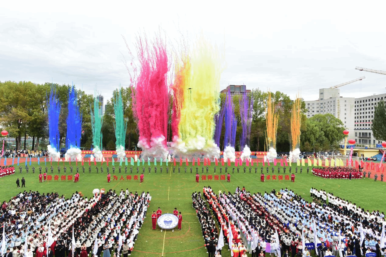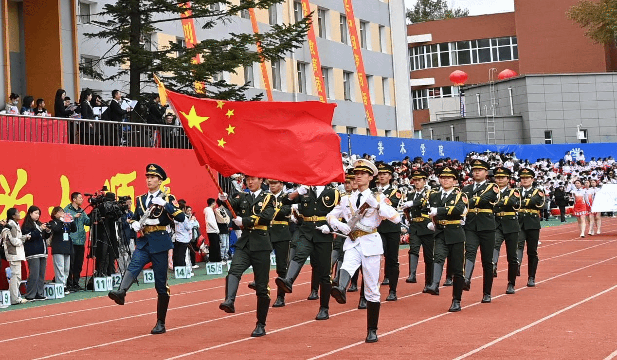 伴随着激昂的进行曲,裁判员和运动员代表队依次入场,接受主席台检阅。师生检阅队伍精神抖擞,步履铿锵,学院和单位方阵各具特色,精彩纷呈,彰显出东师人青春昂扬的精神风貌。大型团体操表演《健体育魂、强师报国》展现了东师人赓续红色基因,勇担崇高使命,践行强师报国誓言的矫健身姿与炽热情怀。